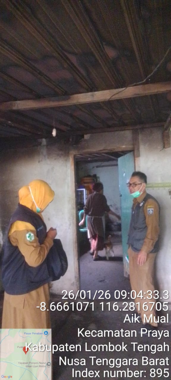 Petugas kesehatan dari Puskesmas melaksanakan kegiatan Penyelidikan Epidemiologi (PE) Demam Berdarah Dengue (DBD) di rumah warga yang diduga sebagai kasus suspek DBD. Kegiatan ini dilakukan sebagai upaya pencegahan dan pengendalian penularan DBD di wilayah setempat.